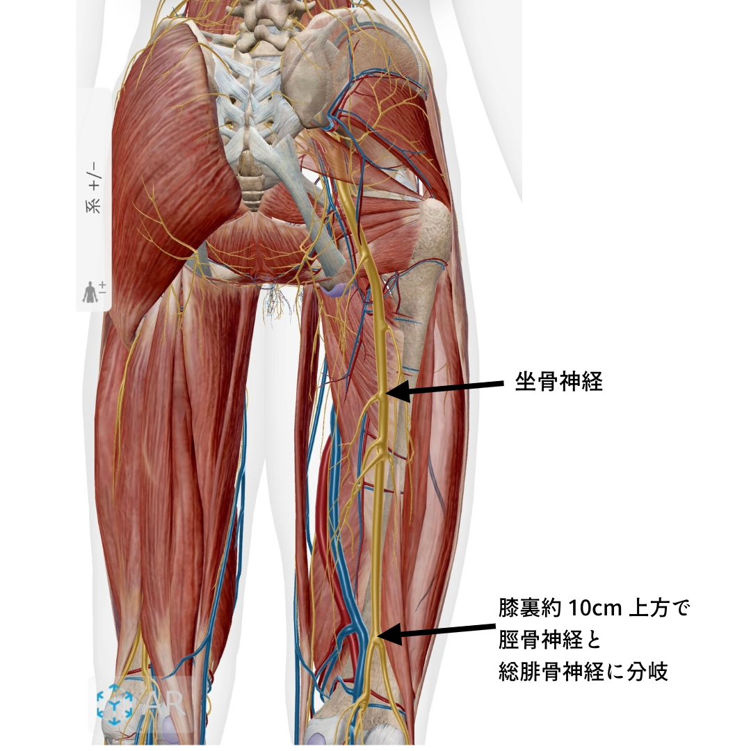 総腓骨神経(下腿の外側に伸びる神経)に分かれる