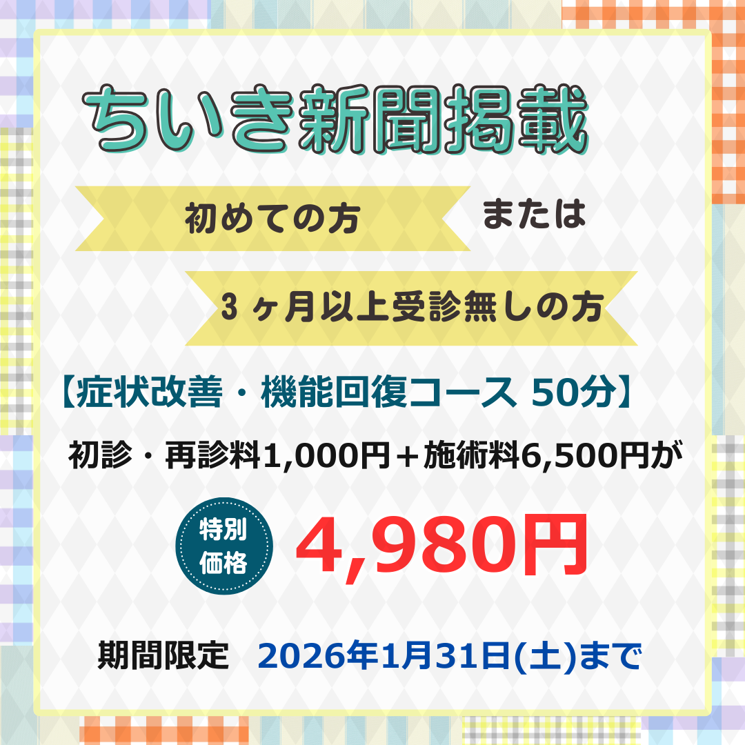 2026年1月31日(土)までの期間限定となりますが、初めて受診される方、3ヶ月以上受診が無い方を対象に、